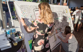Engage event participants with a customized coloring mural. Our artist creates a B&W design that can be colored in at the event with markers. Supplies are provided and a host to encourage participation and answer any questions.