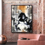 Several years and moves later, Jason now resides in the SF Bay Area. His works are an urban, mixed-media style using a combination of spray paint, marker, acrylic, stencil, and ink. His work can be seen in restaurants, stores, and homes from coast to coast and he has been commissioned by Blackhouse Hospitality, JustFab, and Bloomingdale’s to name a few.
