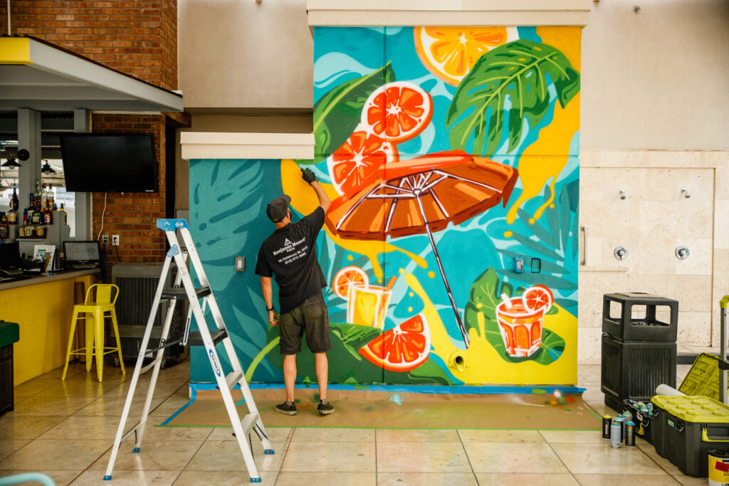 Our approach combines creativity, expertise, and efficiency to deliver exceptional murals and graffiti art in LA. We collaborate with clients to design murals that reflect their unique vision, whether for corporate spaces, live events, or outdoor advertising. Past projects include beach-inspired murals for Nvidia Lightspeed Studios in Santa Monica and SoCal-themed wall art for Taboola’s DTLA office.