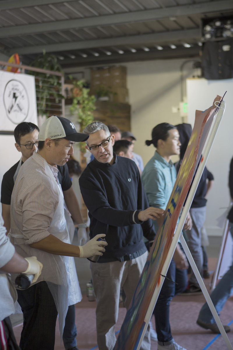 We hosted another collaborative graffiti workshop with the Google Inc. team in Los Angeles. These events are great ice breaking activities to get new employees to meet and interact with each other. For the workshop with Google, we provided the venue and custom canvases that the client was able to keep afterwards. Using a pre-outlined design as a base, the teams worked together to try to replicate a design while adding their creative flair. As a result, a fun time was had by everyone and we always love educating others on how to use spray paint to create art!