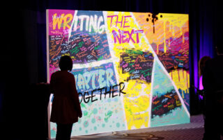 Engage event participants with a customized coloring mural. Our artist creates a B&W design that can be colored in at the event with markers. Supplies are provided and a host to encourage participation and answer any questions.